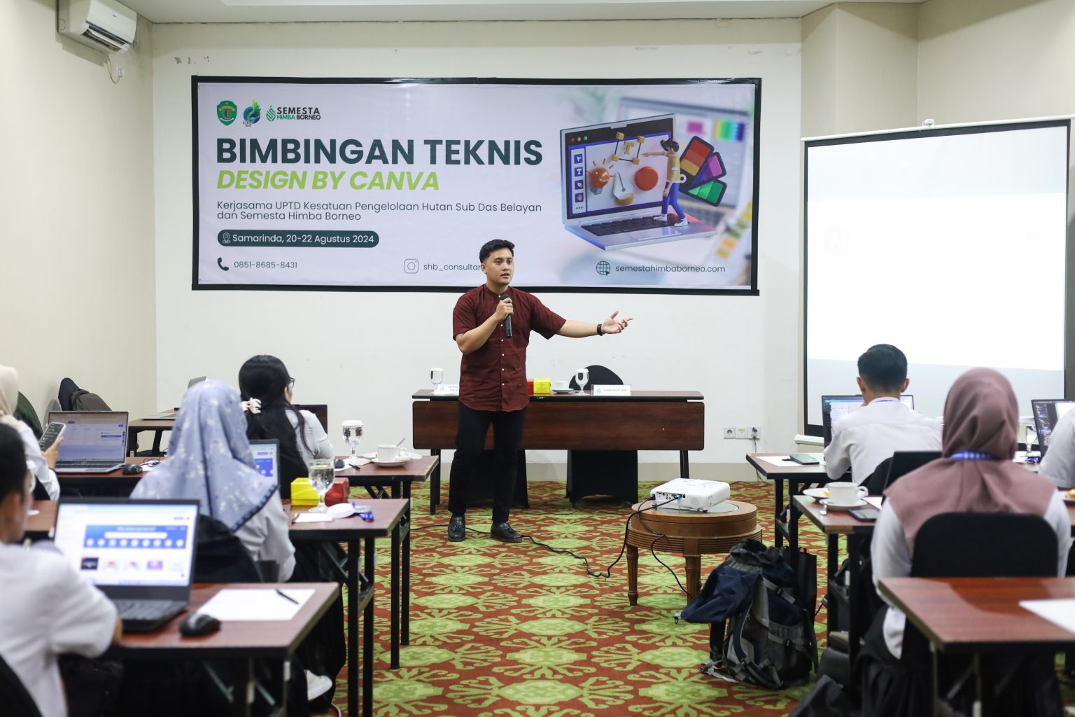 Pada tanggal 20-22 Agustus 2024, Semesta Himba Borneo kembali bekerja sama dengan Dinas Kehutanan UPTD KPHP SUB DAS Belayanan pada Bimbingan Teknis Desain By Canva. Kegiatan ini dilaksanakan di Five Premiere Hotel, Samarinda, Kalimantan Timur. Bimbingan teknis ini diikuti oleh 10 orang peserta yang berasal dari tenaga teknis KPHP SUB DAS Belayan.