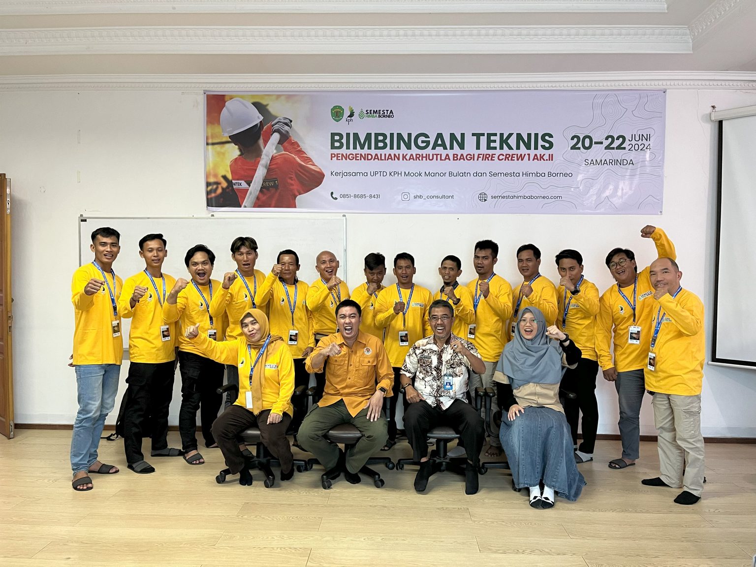Pada tanggal 20 Juni-22 Juni 2024 PT. Semesta Himba Borneo (PT. SHB) telah melaksanakan Bimbingan Teknis Pengendalian Kebakaran Hutan dan Lahan (Karhutla) bagi Manggala Agni  1 (Fire Crew 1) kerja sama dengan Dinas Kehutanan UPTD KPHP Mook Manor Bulatn. Bimbingan teknis ini berlokasi di Semesta Training Center, Jl. P. Antasari, Kota Samarinda, Provinsi Kalimantan Timur. Peserta yang mengikuti Bimbingan Teknis berjumlah 15 orang yang terdiri dari 10 orang staf teknis UPTD KPHP Mook Manor Bulatn dan 5 orang Masyarakat Peduli Api (MPA).